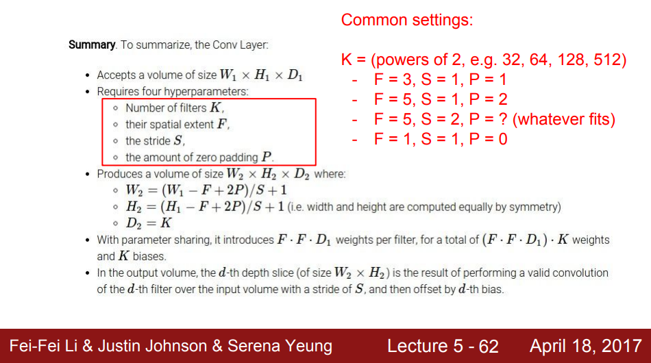 주로 사용되는 필터와 stride의 조합으로는 (3x3 with Stride 1), (5x5 with Stride 2), (7x7 with Stride 3)이 있다.