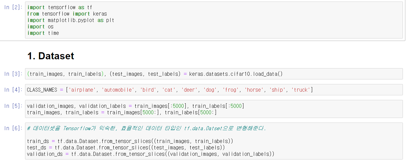 이후, 이를 validation 과 train set으로 각각 분리해주고, Tensorflow에 사용하기 용이한 tf.dataDataset으로 바꿔준다.