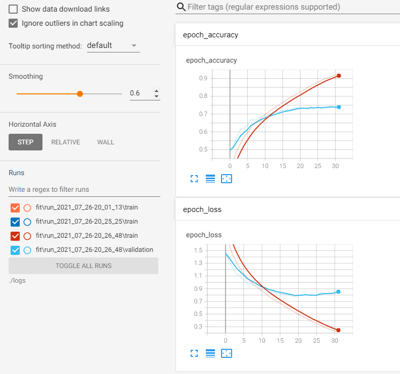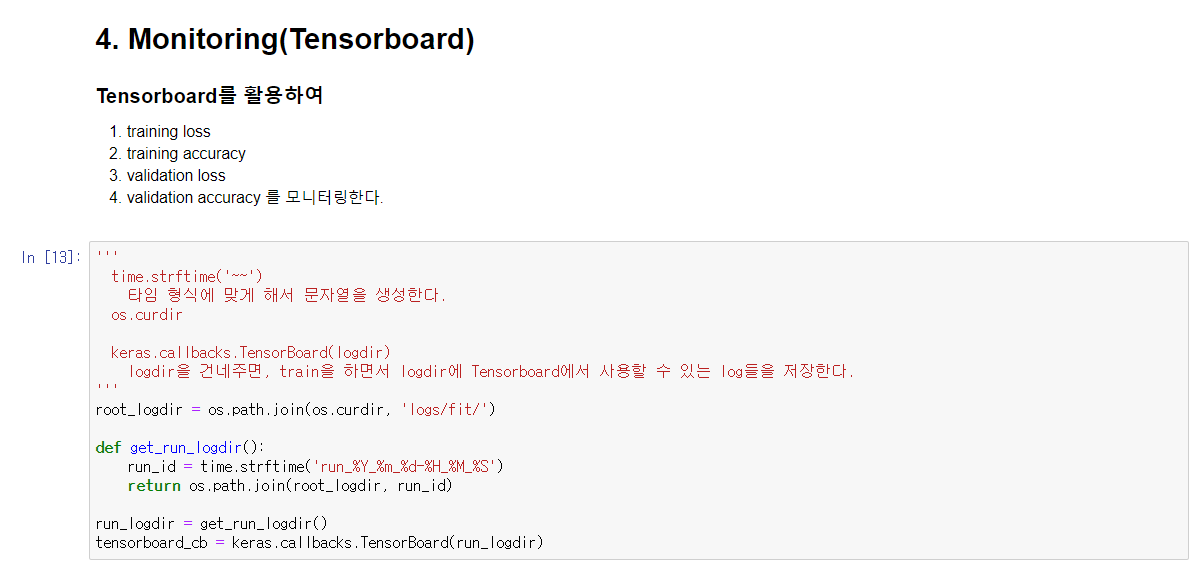 Tensorboard를 활용하여 훈련이 어떻게 진행되었는지를 확인할 수 있도록 설정한다.