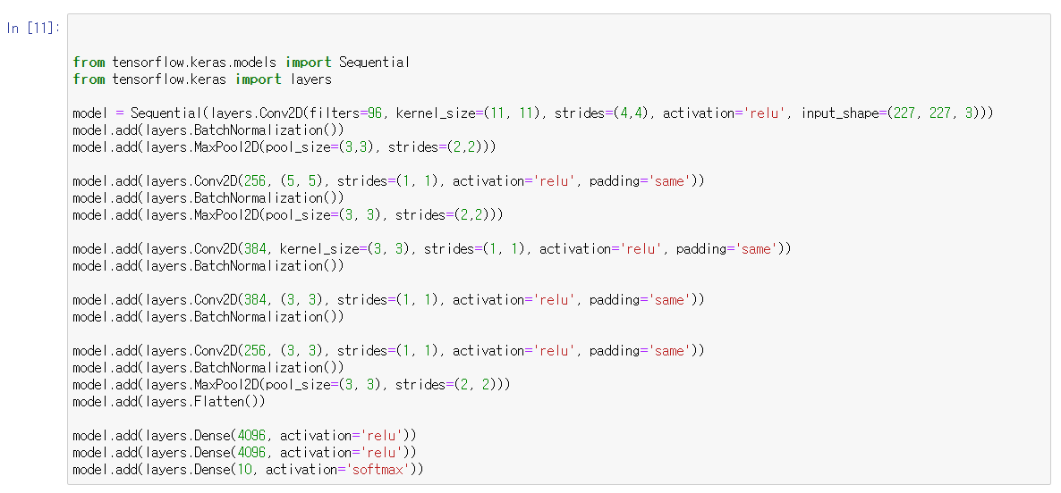 AlexNet에 맞게 모델을 설계한다.