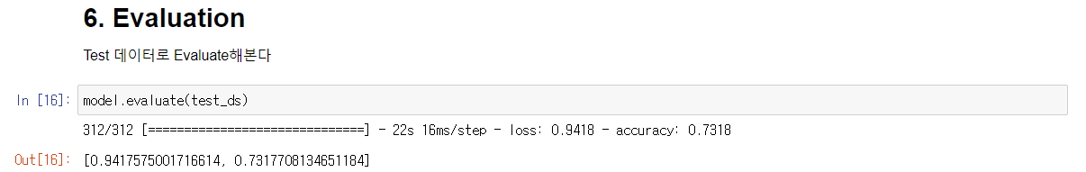 Test데이터를 사용하여 모델의 성능을 평가해본다.